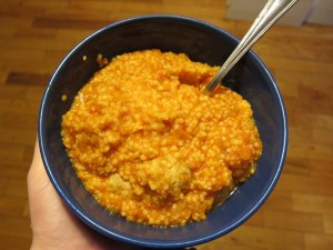 Bring to a simmer, cover, and reduce heat to medium-low. Cook another 15 or 20 minutes, or until the carrot is softened. Turn off the heat and puree the mixture with an immersion blender until smooth. If you don’t have an immersion blender, you can pour the mixture into a regular blender, in batches.