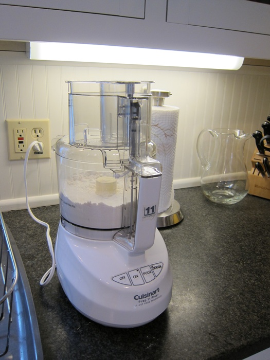 Combine the 2 cups flour, powdered sugar and salt in a food processor and pulse to mix.