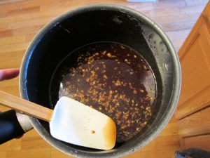 Place the chicken in the greased dish. Brush the chicken with the thickened sauce, flip the chicken, and brush again. I apparently didn’t thicken mine enough, as it was more of a “pour on” than a “brush,” but… well. Impatient. It still worked!