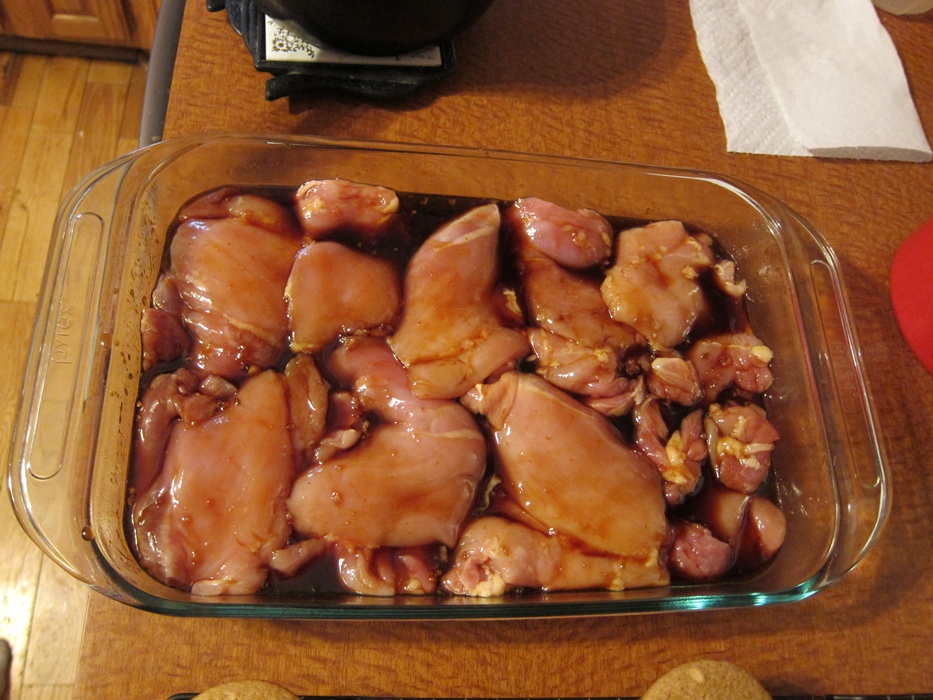 - 12 skinless chicken thighs (I don’t know if I had mutant huge ones or what, but I only got 9 or 10 in)