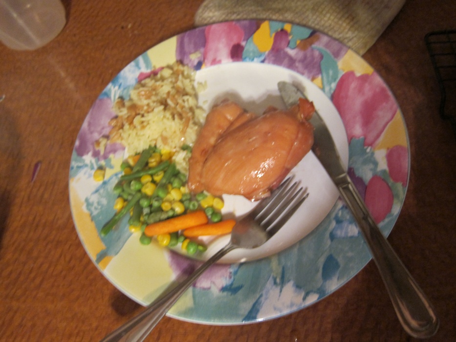 This probably makes the most sense to serve with white rice, but I had it with rice pilaf and it was really good. I’d forgotten how much I apparently like rice pilaf!