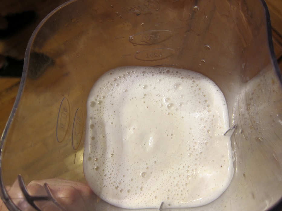 Put the soaked cashews in a blender with enough water to just cover the nuts. Blend until a smooth, thick liquid, then set the cashew ‘cream’ aside.