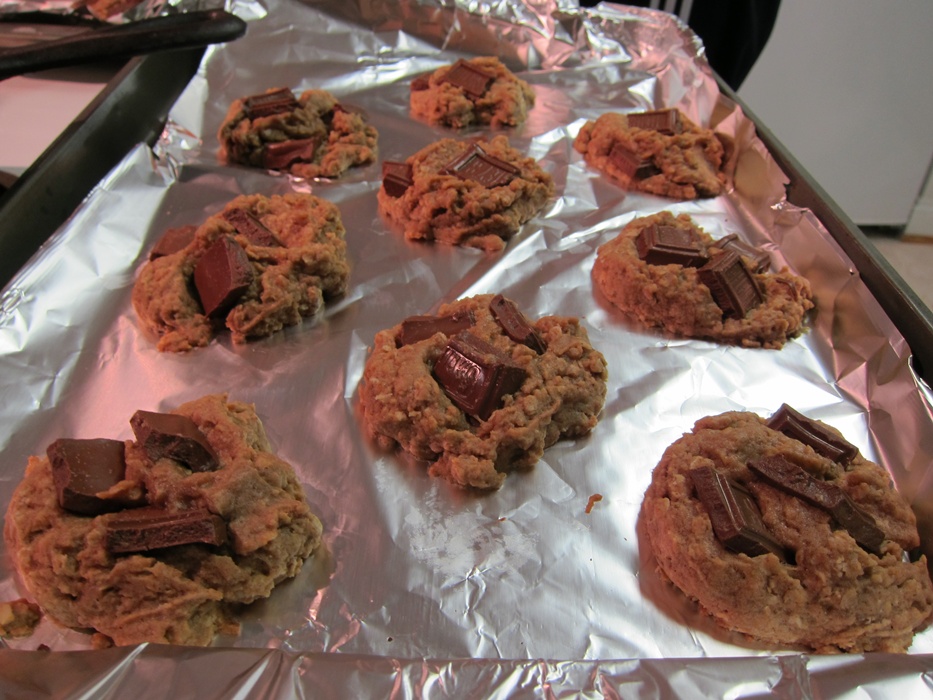 Fold in the chocolate chips and refrigerate dough for 30 minutes. We had really big chunks of chocolate, so just put them in once the dough was on the pans.