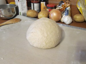 Sprinkle some of the remaining cup of flour on a counter and turn the dough out. Knead the dough for 3 – 4 minutes, then stop to clean out the bowl your dough had been in. Dry and grease the bowl, then set aside. Knead the dough another few minutes until elastic and springy and form into a ball. I only added about a quarter of that last cup of flour.