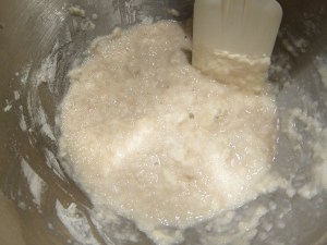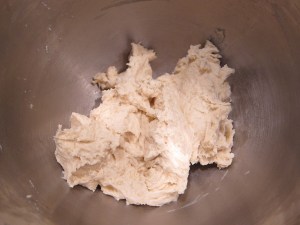 Add the remaining ingredients and mix together until the dough cleans the sides of the bowl and is shiny and elastic. If you don’t have a dough hook, you’ll have to stop it to knock the dough out of the paddle several times.