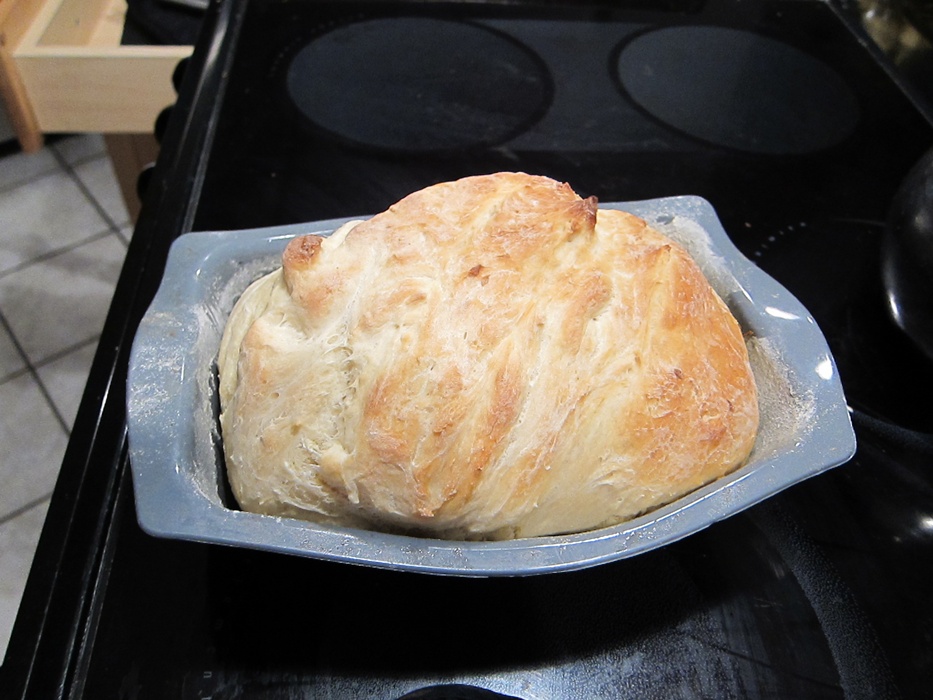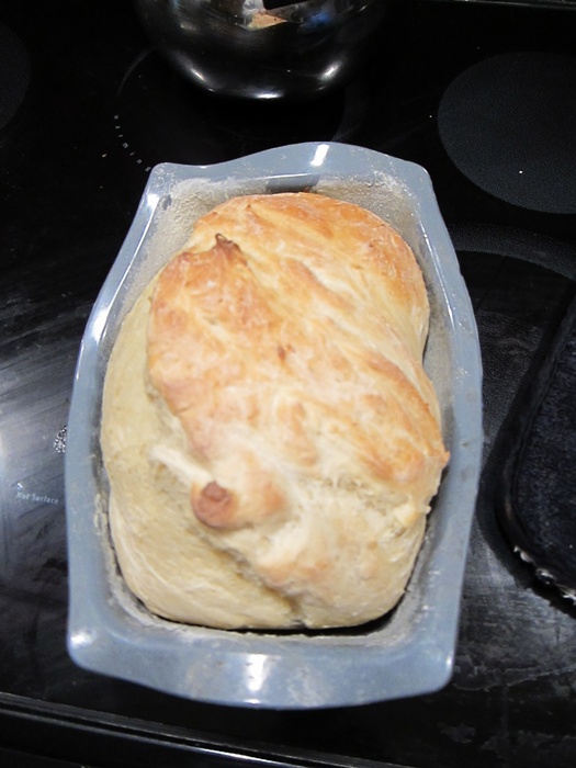 Preheat the oven to 350 degrees. Slash the top of the loaf and bake 30-40 minutes, until nicely browned.