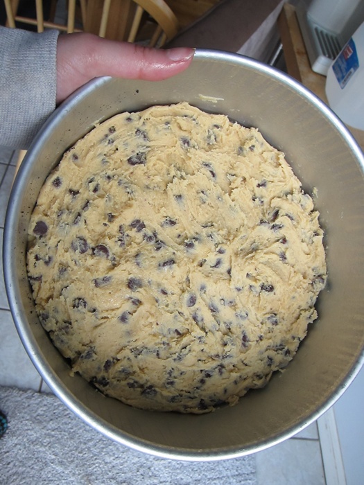 This cake, halved from a Cookie Madness recipe, can definitely stand on its own as a real nice yellow cake, and the cookie recipe is adapted from Rosie’s Bakery All-Butter, Fresh Cream, Sugar-Packed, No-Holds-Barred Baking Book. Combined, they make a heck of a thing!