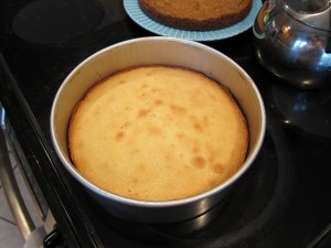 Grease two 9″ round cake pans, line the bottoms with parchment circles, and grease again. Preheat the oven to 350. All the baking happens at 350, so don’t worry if you don’t see temperatures listed for each item.