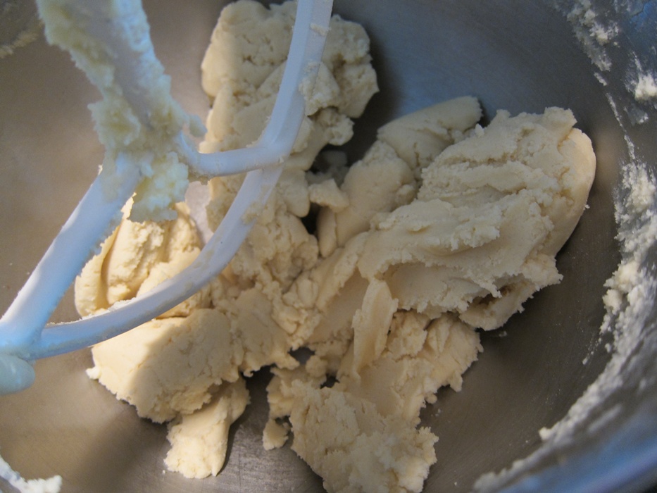 Cream together the butter and sugar until light and fluffy. Add the dry ingredients and beat until light and fluffy, stopping to scrape down the sides of the bowl several times. Pat the batter into a rectangle roughly 1/2″ thick and wrap in plastic wrap. Refrigerate at least 3 hours.