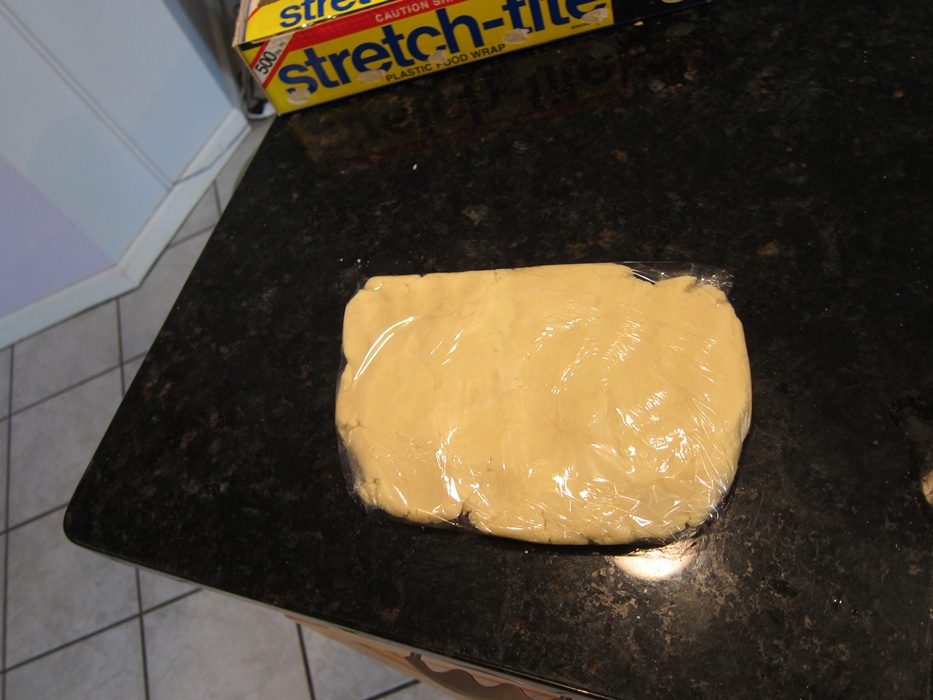 Pat the batter into a rectangle roughly 1/2″ thick and wrap in plastic wrap. Refrigerate at least 3 hours.
