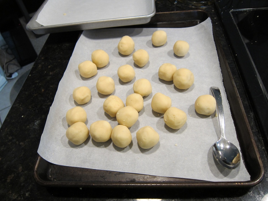 Measure out rounded teaspoonfuls of dough and roll them into balls.
