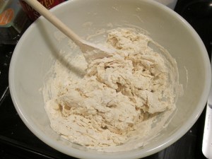 To make the dough, stir together the starter, water, and three cups of the flour.
