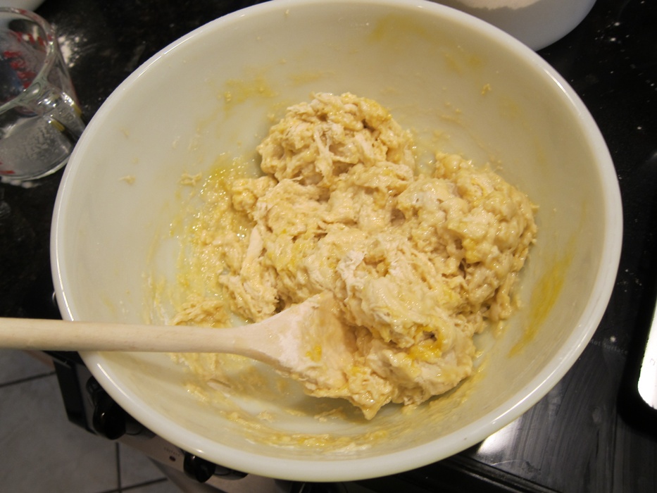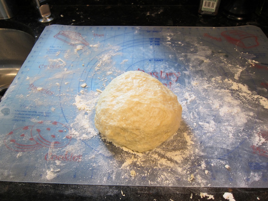 Sprinkle half a cup of the remaining flour on a clean surface and turn the dough out on it. Knead until smooth and only lightly tacky, adding as much of the last half cup of flour as necessary – I needed just over 3 1/2 total.