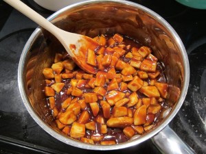 - 3 medium apples, peeled, cored and cubed