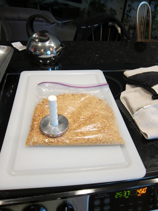 Crush the graham crackers into crumbs, using a food processor or by putting them in a bag and smashing them.