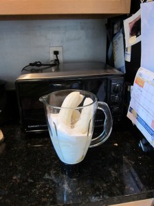 Combine the cream, eggs, vanilla, bananas, and sugar in your blender.