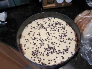 Pour into the prepared crust, then sprinkle with chocolate chips.