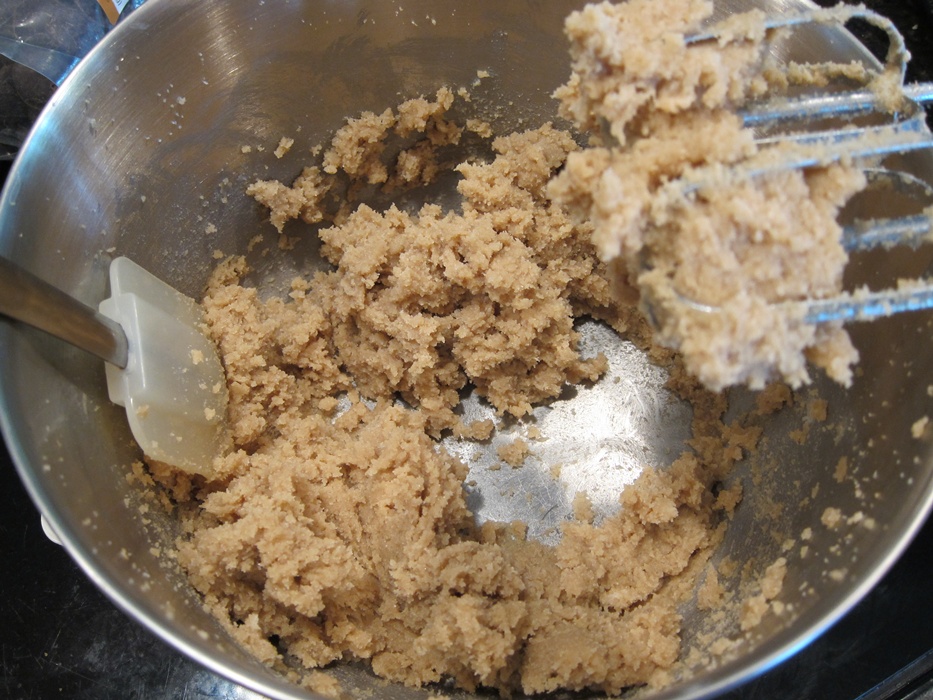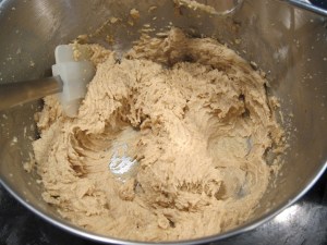 In a large bowl, cream the butter and both sugars until light and fluffy. Add the eggs and vanilla and beat until well combined, 2-3 minutes. Add the peanut butter and beat until well combined again, another 2 minutes. Add the dry goods and beat in slowly until just mixed. Cover your bowl, or transfer to a smaller bowl and then cover, and refrigerate at least 3 hours, up to a week.