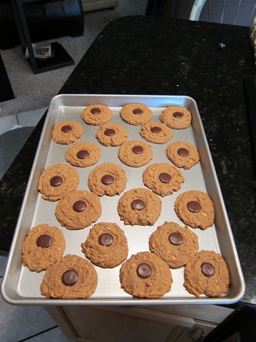 After the recipe I originally wanted to try Tuesday flopped, I did a rushed scan around the bookshelf for something that I had all the ingredients for to bring to floor hockey that night. I found a recipe for peanut butter cookies in the cookbook from Flour Bakery, and added Ovaltine and a bit of chocolate because… it is my way?