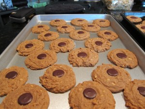 The Ovaltine flavor’s barely noticeable, but I think adding it (and the chocolate discs) was a good move – I often find peanut butter cookies pretty boring, but I could eat these ones all day. They’re also better than many peanut butter cookies in that they’re not dry. All in all, not bad for a panic replacement recipe!
