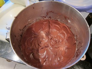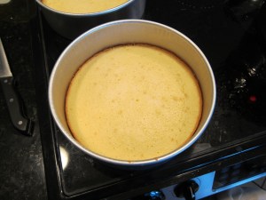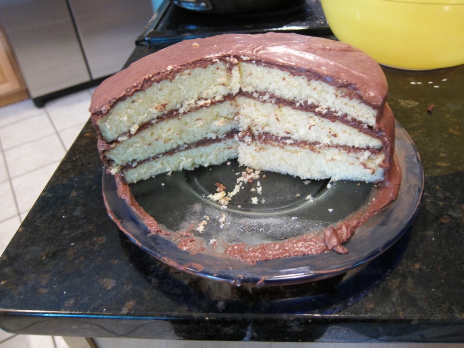 Okay, it’s…another cake! This one’s a three layer cake. As it turns out, my third pan isn’t quite the same size as the other two, so it’s a lumpy three layer cake! Ah well…