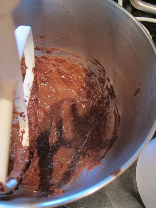 Place the cocoa powder in a large bowl and pour the boiling water over it. Stir together until the cocoa is completely moistened, then add the butter. Beat on low speed until smooth.
