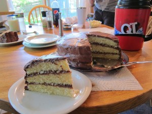 The cake’s not as tangy as I thought it might be, being a buttermilk cake, but it was good. People seemed even more excited about the frosting than the cake, though.