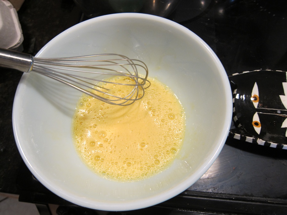 In another medium bowl, beat the eggs and vanilla until frothy.
