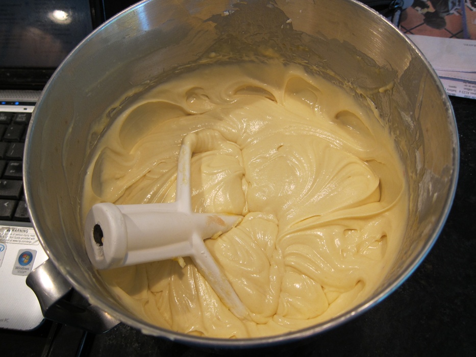 Combine all the cake ingredients in the bowl of your mixer and beat on medium speed for 20 minutes. While that’s beating, preheat your oven to 350 degrees and grease a bundt pan.
