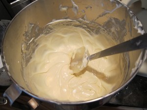 In a large bowl, beat together the eggs and sugar on medium-high speed until the eggs become pale yellow, about 3 minutes. Add the vanilla and beat another 30 seconds.