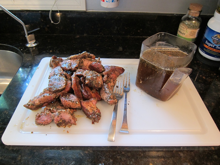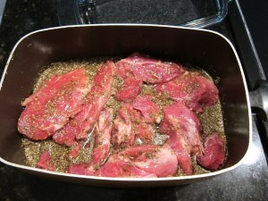 Pour over the pork, and flip the pork (pieces) so that it gets well covered.