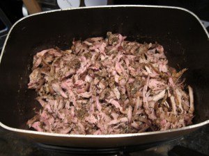 This stuff smells really good, and tastes it too. Worth the hassle of shredding all that pork!