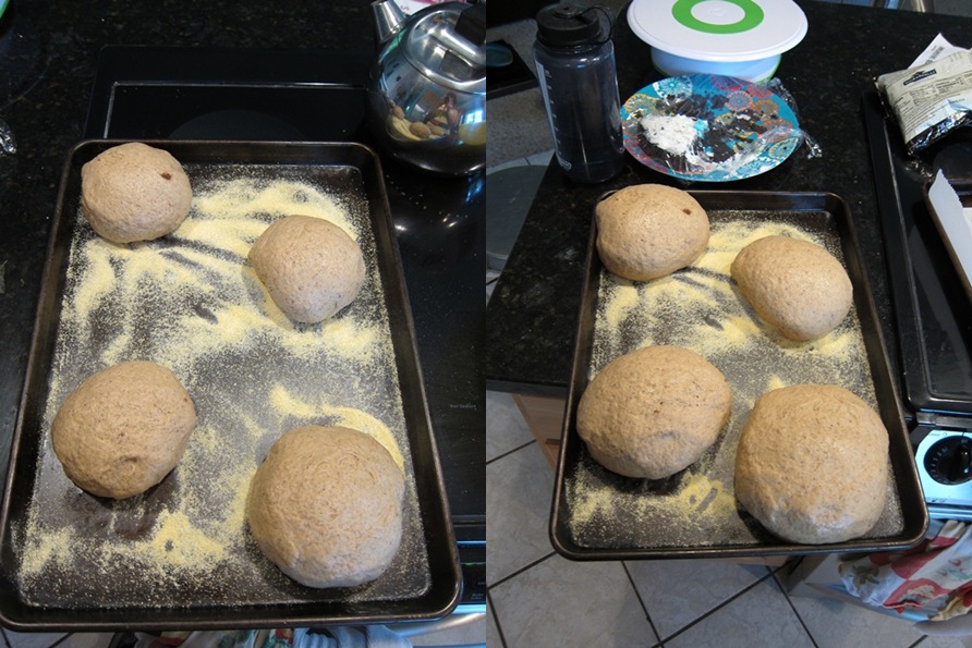 Punch down the dough, then divide into quarters. Shape each into a ball and place on a baking sheet sprinkled with the cornmeal. Cover and let rise until doubled again, about an hour.