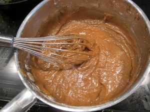 Combine the butter and brown sugar in a big pot over medium heat. Cook until the butter is melted and the brown sugar has dissolved, stirring frequently. Remove from the heat and let cool slightly. Stir in the two eggs and the vanilla.