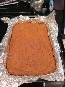 Let cool in the pan on a rack until warm, rather than hot, then refrigerate until chilled and firm. Mine were solid enough after half an hour of cooling that i was able to lift them out of the pan by the extra tinfoil and just put them, on a wire rack, in the fridge. Removing the hot pan will let them cool easier, as long as they feel like they’ll hold together. Once cool, cut into squares and serve.
