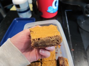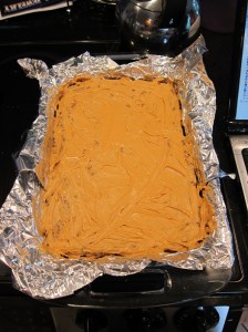 If, say, you maybe forgot to put the butterscotch chips in earlier, just melt them now and spread them over the top.