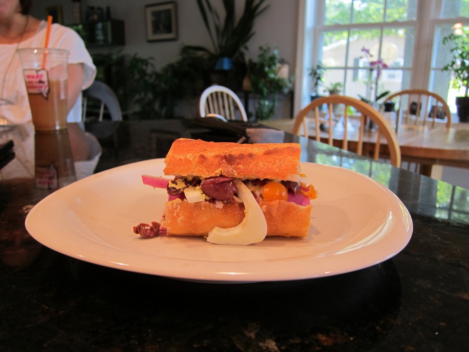 Hey, it’s a thing I’m not positive how to pronounce, based on another thing I can’t pronounce! This sandwich is pretty much a salad niçoise, minus the lettuce and plus bread. I’m pro carb-y things, so it’s a good change.