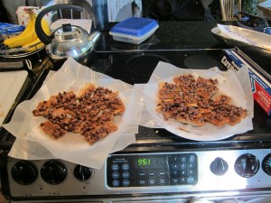 Let cool for several hours until the chocolate chips are firm again. Break apart, separating the graham cracker pieces along their edges as much as possible. It doesn’t really matter if you end up making jagged pieces, it still tastes delicious!