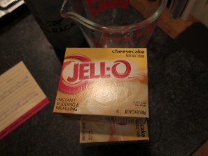 - 3 packages of small instant cheesecake pudding (3.4 ounce boxes)