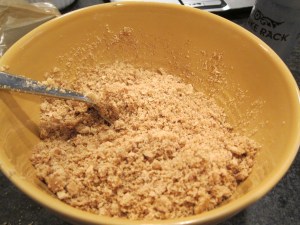 Stir the graham mixture into the pudding mixture. While you were mixing up the graham crackers, the pudding mixture probably got a bit more solid than it was before – that’s fine!