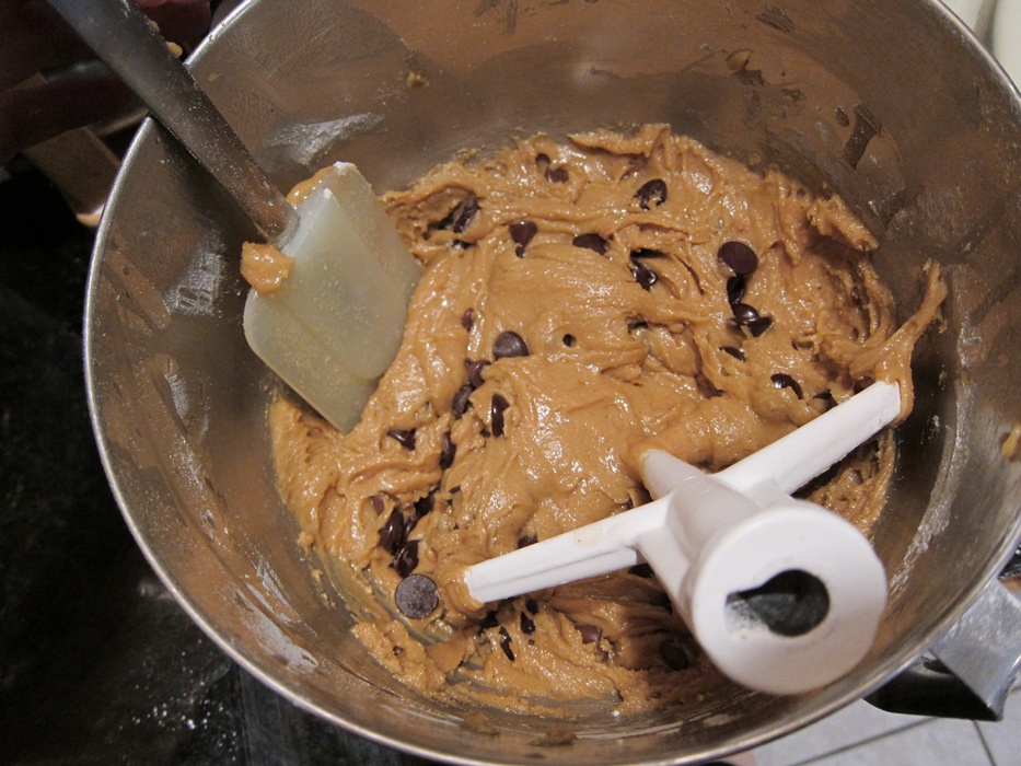 Gradually add the flour mixture, mixing until just combined, then add the chocolate.