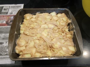 While I was stirring everything together, it didn’t seem like a lot of batter for all that apple, but it filled out while baking. Also got a nice crisp top!