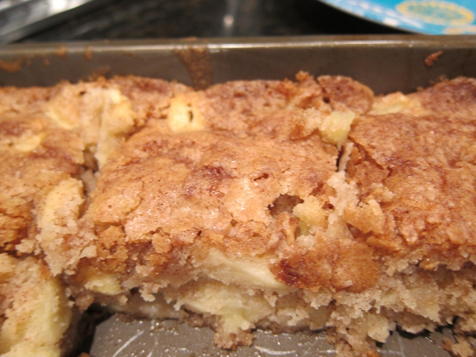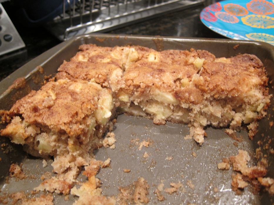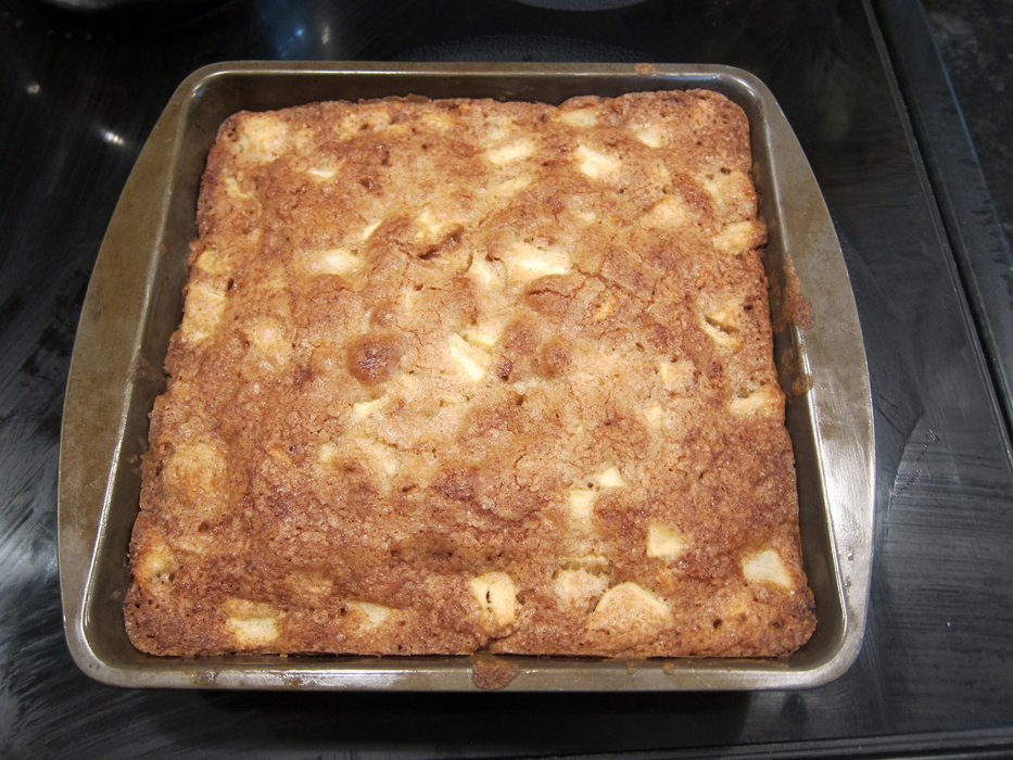 The paper this recipe was from called them “apple brownies,” but with no chocolate and a very un-brown batter, I’m not sure that the name fits. What ever kind of appley baked good they are, they’re well worth trying!