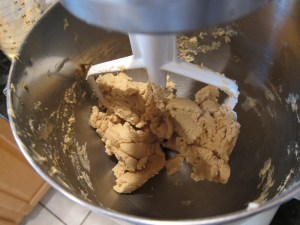 Beat in the flour, powdered sugar, and salt, beating until the dough holds together.