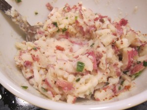 Last week I was looking at a chicken recipe (I’ll post that at some point next week) and trying to figure out what to cook with it. My friend Alex suggested potato salad with coarse ground mustard, which sounded good. I had a dijon potato salad recipe bookmarked, which just required a change in mustard types to be perfect!