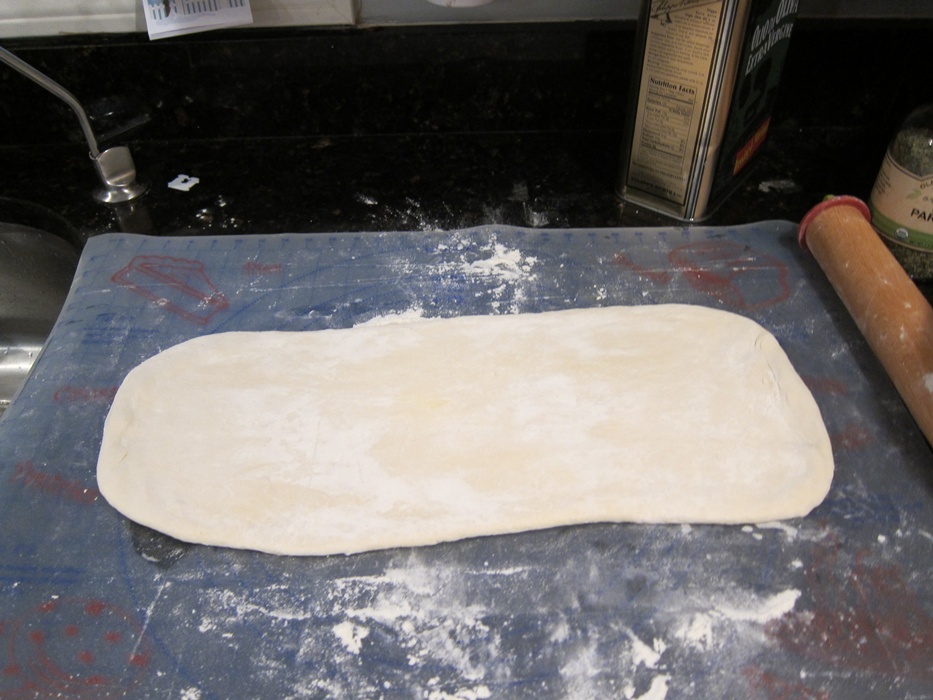 Turn the square seam-side down and roll out into a rectangle 1/4″ thick.