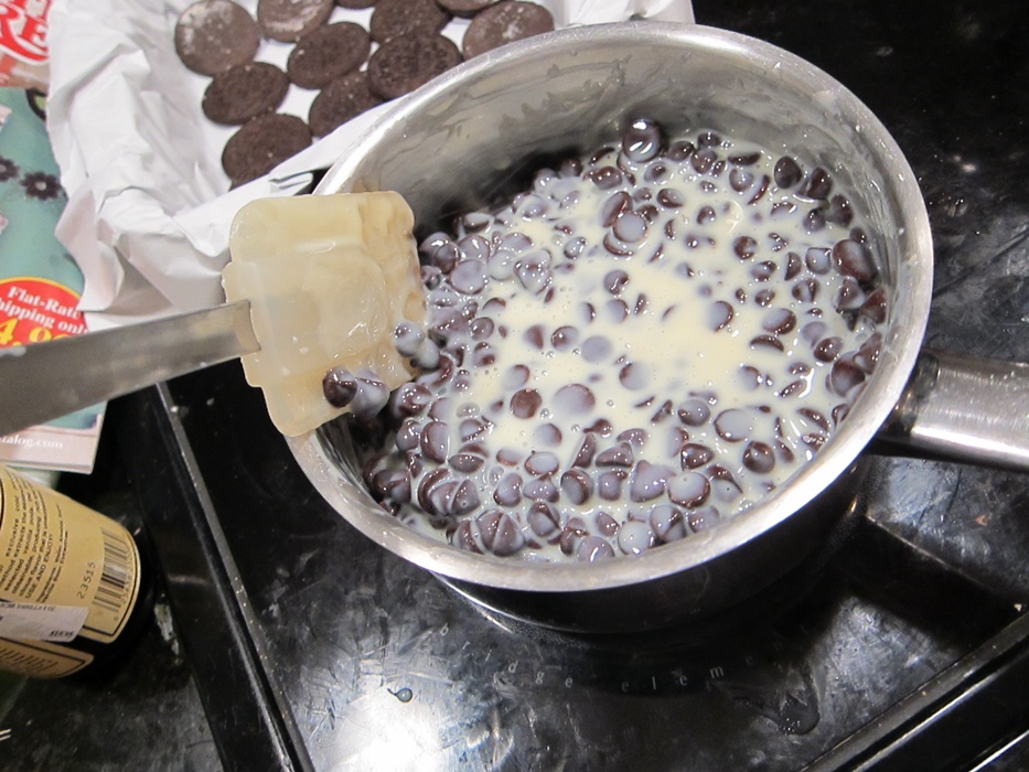 A satisfactory fate for those Oreos! Yum. Oh, I liked this level of mint-y-ness, but I suppose if you wanted a breath mint level of mint, you could change some/all of the vanilla out for mint extract. Do so at your own risk!