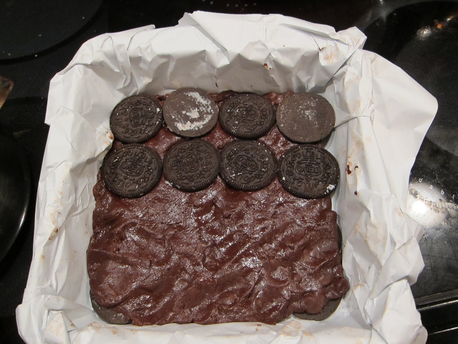 I seriously misjudged what half was, and could have covered the bottom layer of cookies more thoroughly.