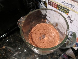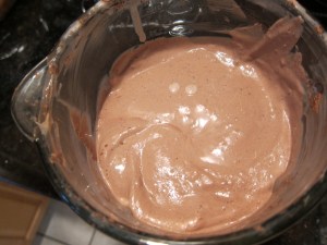 Blend until the chocolate chips have been cut up into small pieces and everything is well mixed, 30-45 seconds. Don’t just blend indefinitely after that, as you’ll probably start making butter at the bottom of the blender after a few minutes, and that’ll be a gross pain to clean.