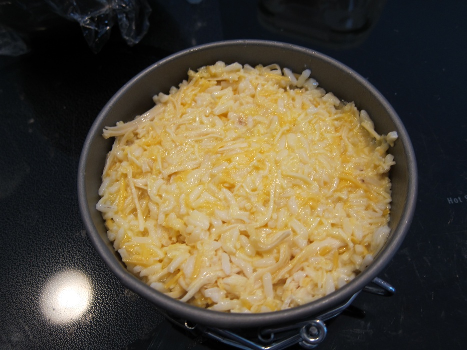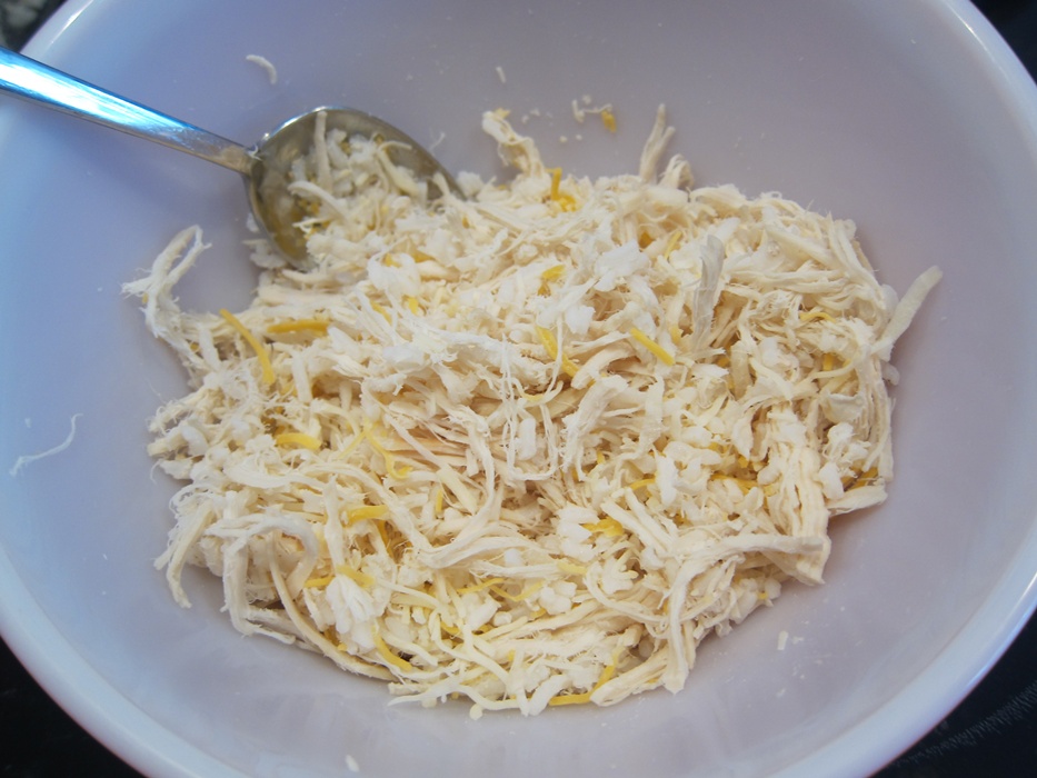 IMG_4350Beat the eggs together briefly in a small dish, then stir into the chicken mixture to evenly coat. Spoon into the prepared pan.